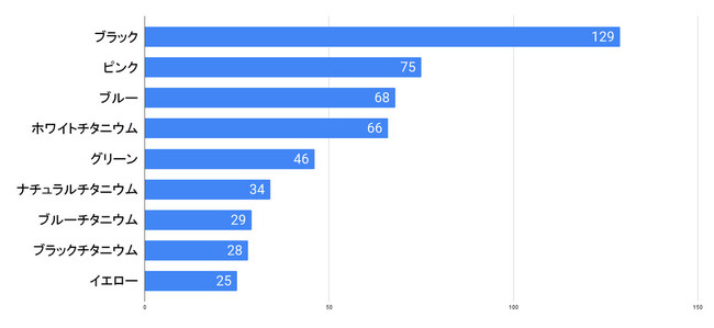 「もし、iPhone 15を購入するなら、どのカラーのものを購入しますか?」という質問をしたところ、ブラック、ピンク、ブルーの3色が人気だということがわかりました。