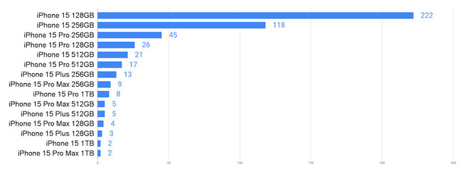 iPhone 15 128GB:222名