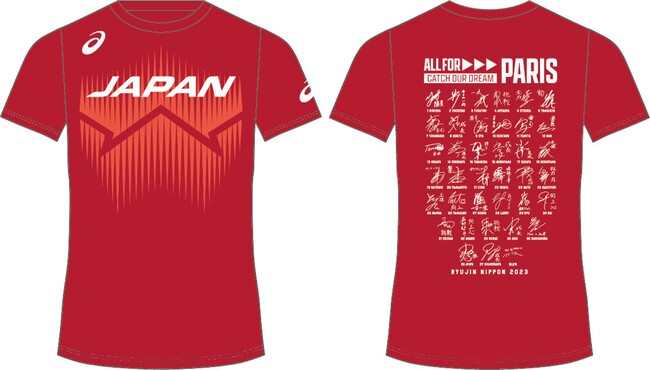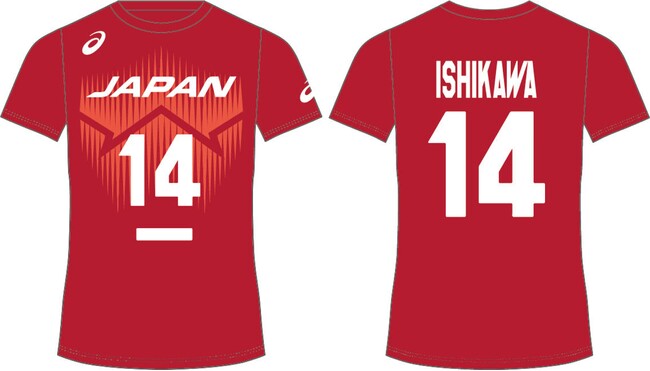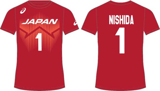 バレーボール男子日本代表選手が着用するユニホームと生地やデザインが同じ仕様のレプリカシャツ、応援Tシャツを数量限定で販売します。石川祐希選手、西田有志選手、高橋藍選手それぞれの名前と背番号が入った3タイプがあります。また、応援Tシャツはバレーボール男子日本代表選手と監督のサインがプリントされたデザインも販売します。