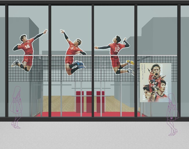 期間中は、バレーボール男子日本代表チームのレプリカユニホームや応援Tシャツを販売し、選手が国際大会で実際に着用したサイン入りバレーボールシューズをビジュアルとともに展示します。