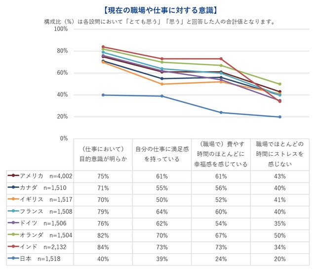 ・調査対象者:アメリカ(4,002名)、カナダ(1,510名)、イギリス(1,517名)、フランス(1,508名)、ドイツ(1,506名)、オランダ(1,504名)、インド(2,132名)、日本(1,518名)における18歳以上の労働者
