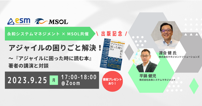 株式会社マネジメントソリューションズ(MSOL:エムソル、所在地:東京都港区、代表者:高橋信也)は、株式会社永和システムマネジメントと共催で、アジャイルの理解を深めたい方向けの無料セミナー、「アジャイルの困りごと解決!~『アジャイルに困った時に読む本』著者の講演と対談」を9月25日(月)に無料で開催します。
