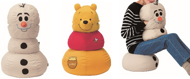 このほか、ビーズクッションとフェイス型クッションがセットになった「座って積んでうたた寝て。クッション3個セット」は、「くまのプーさん」「オラフ」の愛らしさもさることながら、座椅子、うたた寝クッションとして使える実用性も兼ね備えた優れもの。「ハグしてくれるつつ毛布」は、大好きなキャラクターにハグされたいというキャラクターファンの気持ちに応えた新タイプの商品です。