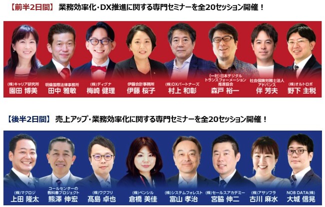その他にも、本分野の第一線で活躍する方々を講師にお招きし、全40セッションを開催する。あらゆる業種・企業・法人のビジネスパーソン必見のセミナープログラムだ。