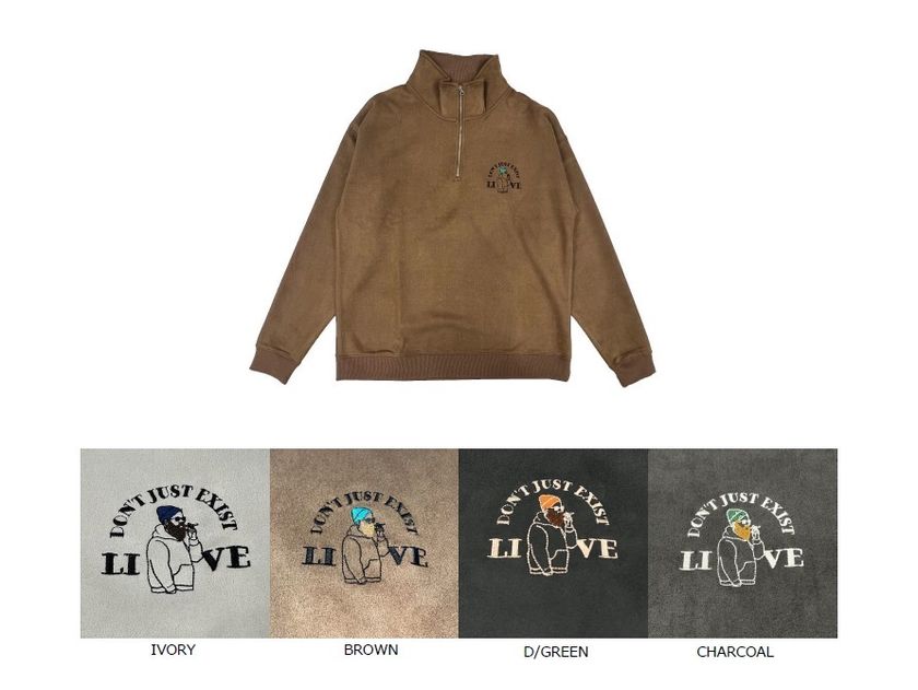 ポンチスエードタッチ刺繍ハーフZIPトレーナー