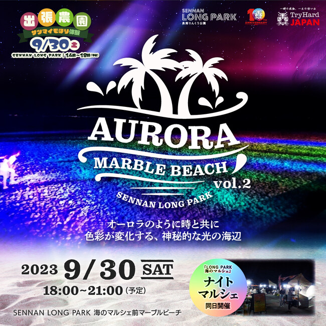 株式会社トライハードジャパン(所在地:大阪市中央区)は、2023年9月30日(土)にSENNAN LONG PARK(センナンロングパーク)(所在地:大阪府泉南市)海のマルシェにて、「出張農園~さつまいも堀り体験~&Aurora Mable Beach」を実施いたします。