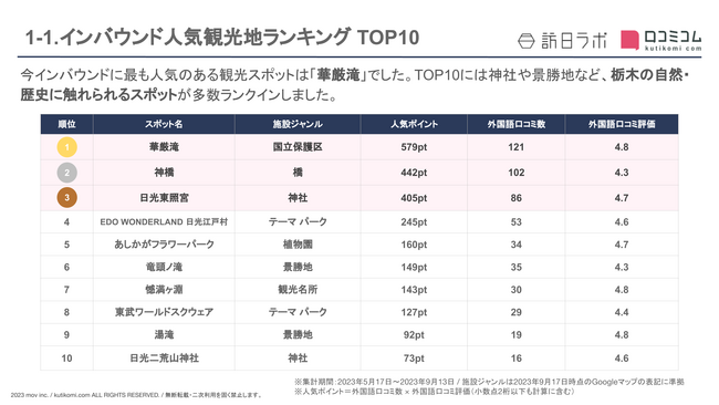 【独自調査】インバウンド人気観光地ランキング栃木編:コロナ後 最新の訪日客の支持を集めたスポットTOP10を発表 #インバウンドMEO