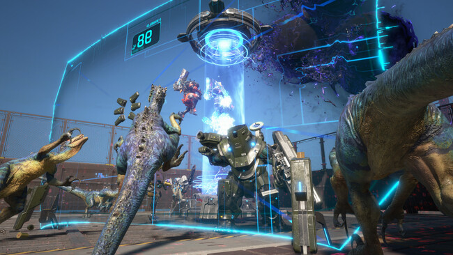 歴史上最凶の「恐竜大軍勢」を人類最強の「エグゾスーツ」で打破するチーム対戦型マッシヴアクション。