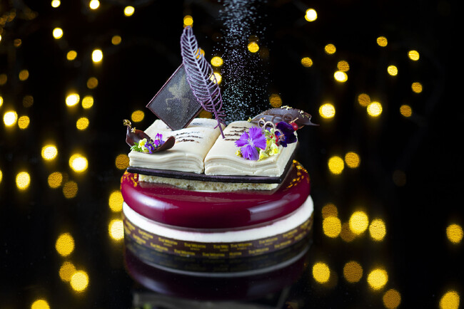 夢のように美しいという意味をもつケーキ「フェリーク」は、カスタードクリームとメレンゲを合わせた洋なしのシブーストを洋書に見立て、クリスマスの雰囲気を取り入れました。さっぱりとした甘みが特徴の愛媛県産河内晩柑のコンポートを、イタリア産ヘーゼルナッツの香り豊かなムースで包み込み、マダガスカル産バニラの滑らかなムースの上に重ねました。清く澄み渡った真夜中に妖精があなたに届ける贈り物をイメージしています。そのほか、毎年ご好評いただいているいちごたっぷりの「マトラッセ フレーズ」、濃厚なチョコレートムースをクリスマスリースに見立てた「ノエル ショコラ」の3種類のクリスマスケーキをラインナップ。