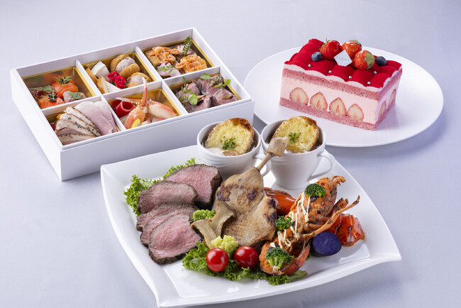 また、日高見牛のローストビーフや、オマール海老のテルミドールなどプレミアムな食材を用いたクリスマスらしいお食事や、サフランの香りが食卓を包み込むブイヤベースなど、テイクアウトのパーティーハンパーもご用意しています。さらに、いちごテイストの生地にドライベリーやナッツを練り込んだフルーティーなシュトーレンも登場し、当ホテルならではの味わいをお楽しみいただけます。