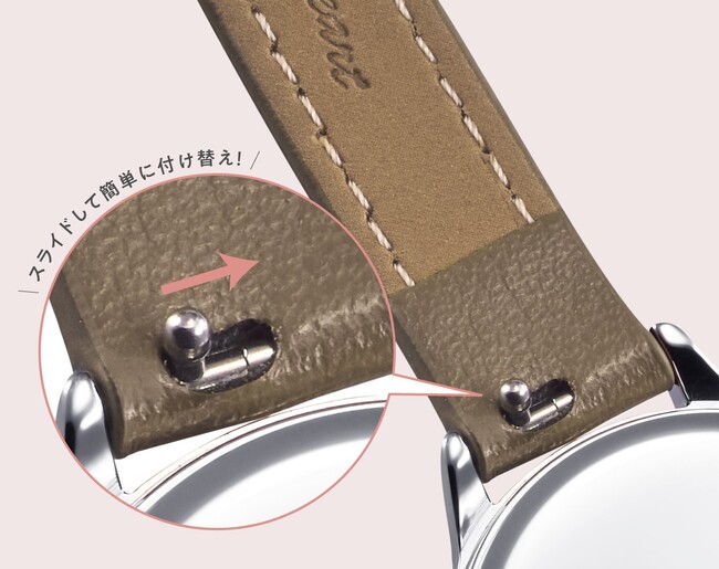 本新商品はその日の気分やシーンに合わせてご自身で簡単に付け替え可能なレザーベルトとメッシュベルトがセットに。
