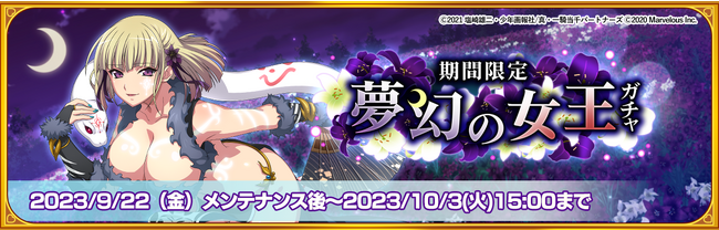 本日開始の「夢幻の女王ガチャ」からは、限定闘士「【夢幻の女王】黒百合」が新たに登場する他、
