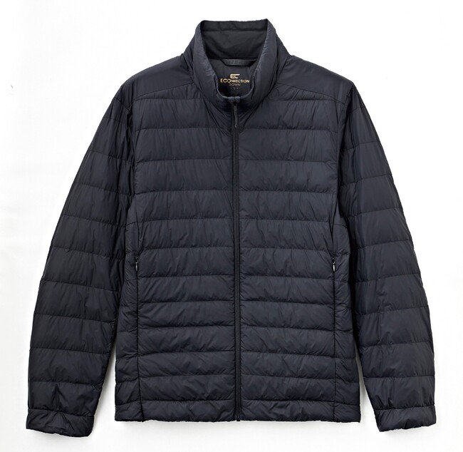 エコネクションダウンは、ダウンと植物由来の中綿をミックスした環境に優しい高機能商品です。 持ち運びに便利なポケッタブル機能搭載で、キルトピッチを変化させる事によって細見えするシルエットになっています。 ベスト、ジャケットの2種類を展開します。