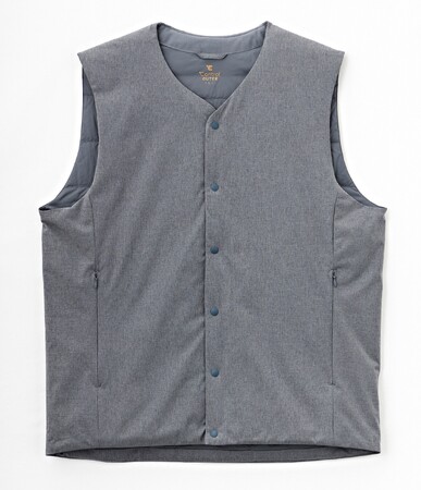 コントロールアウターは、温度調節機能中綿を使用し、快適温度に調節してくれる高機能商品です。 寒い屋外では温度が下がりにくく、暖房の効いた室内でも温度が上がりにくいのが特徴です。 ベスト、ジャケットの2種類を展開します。