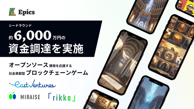 ELSOUL LABO B.V. (エルソウルラボ、本社: オランダ アムステルダム、代表取締役CEO: 川崎文武)が運営する、オープンソース開発を応援する社会貢献型ブロックチェーンゲームのEpics DAOは、シンガポールのスタートアップ投資VCのEast Ventures及びエストニアのWeb3企業特化型シードVCのRikka (Rikkaのアドバイザー兼LPとして日本のエンジニア起業家特化型VCのMIRAISE)、並びに日本の事業会社2社及び20名の個人投資家を引受先としたSAFTとトークンセールによる、総額約6,000万円のプレシード・シードラウンドを実施したことをお知らせします。