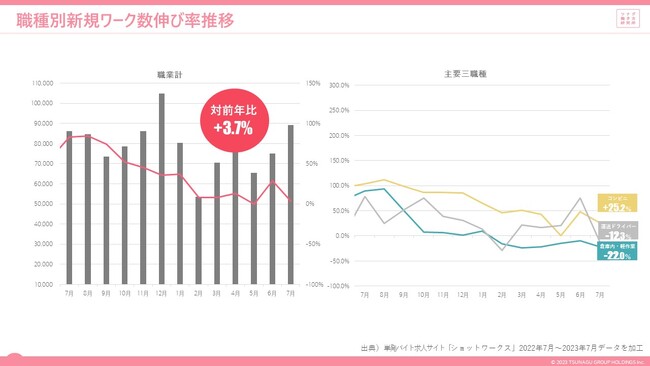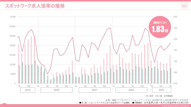 単発バイト求人サイト「ショットワークス」2019年7月~2023年7月データ