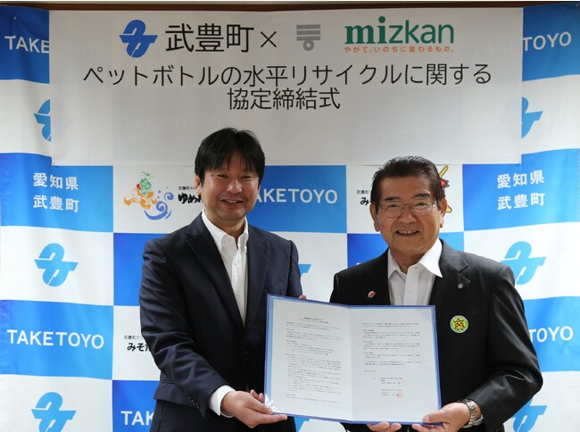 愛知県知多郡武豊町(町長:籾山 芳輝、以下武豊町)と株式会社Mizkan(本社:愛知県半田市、代表取締役社長兼CEO:吉永 智征、以下ミツカン)は、2023年9月26日(火)に、「資源循環型社会の実現に向けたペットボトルの水平リサイクルに関する協定書」(以下、本協定)を締結いたしました。本協定により、武豊町において排出・回収される使用済みペットボトルを「ボトルtoボトル」水平リサイクルにより安定的にペットボトルとしてリサイクルすることにより、武豊町における資源循環型社会の実現に役立てることに「ともに」取り組んでまいります。