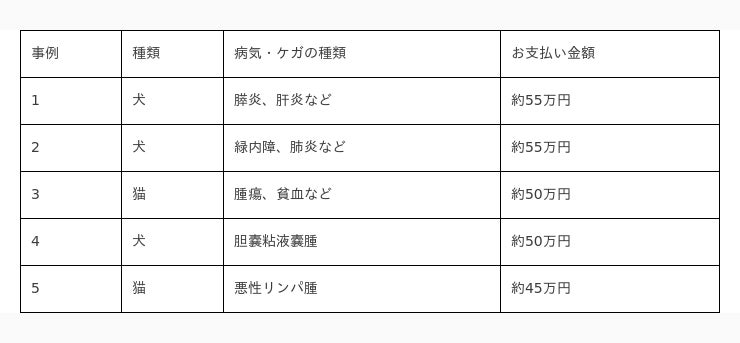 ※上記の数値は、PS保険加入者さまから請求されたものであり、ペットメディカルサポートが補償する範囲を示すものではありません。また、平均や水準を示すものでもありません。