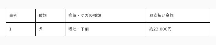 保険金のお支払いは、上記のように高額なものに限りません。次に、平均的な保険金のお支払い事例としてペットの嘔吐・下痢の診療をご紹介します。