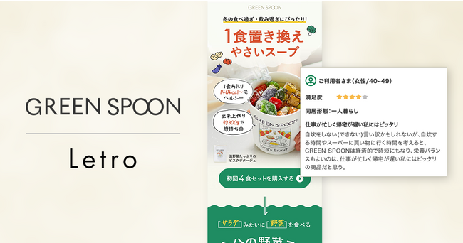 定額制パーソナルフードブランド「GREEN SPOON」がLetroを活用。レビュー運用でCVR1.7倍を実現、定期顧客の獲得効率アップに成功