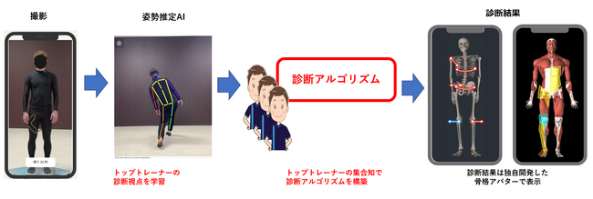 トップトレーナーの集合知を基にして学習したAIシステムで、「身体の見立て」「どこを」「どの順番で」「何のトレーニングをすべきか」の最適なトレーニングメニューを提案する「BAT(Body Analyzing Technology)システム」を開発し、人々が自分の足で生涯歩ける世界を実現します。