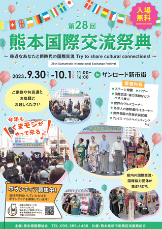 また、熊本県と海外との国際交流を促すイベント「第28回 熊本国際交流祭典」(主催:熊本県国際協会)もサンロード新市街にて同時開催されます。