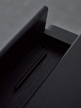 そこで、私たちはこれらの課題を解決できるデスクデザインの議論をチェアの開発と並行して重ねてきました。結果導き出したのは、デスク上に広がった書類やガジェットを整理しリセットする収納を持ち、リビング・ダイニングにある他の家具との間で不協和音を生み出す重たい存在にならないデザイン。手に馴染み長くともに過ごしたい温もりのある素材を使うこととFOURチェアを受け止める美しさがあることも大切にしました。