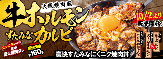 10月2日(月)全国のすた丼屋で販売開始!大阪焼肉をイメージしたホルモン×すたみなカルビの“タレ焼肉”丼が登場!
