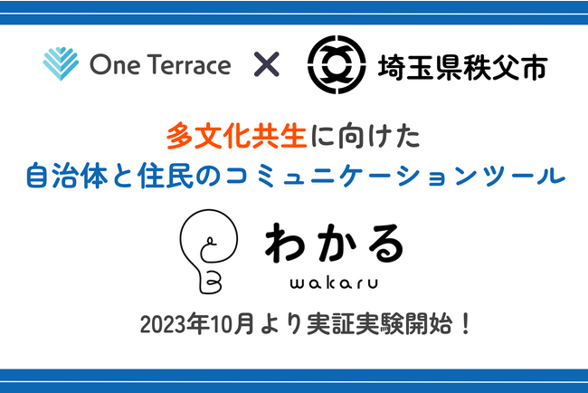 株式会社One Terrace(本社:東京都千代田区、代表取締役 石中 達也、以下「弊社」)は、今後増加が見込まれる生活者としての外国人と自治体および地域住民や支援者との情報伝達やコミュニケーションの効率化に取り組んできております。このたび、埼玉県秩父市(秩父市長:北堀 篤、以下秩父市)にて、外国人住民向けに行政情報をわかりやすく多言語で発信するコミュニケーションツール「わかる」を2023年10月10日10時に実証実験としてリリースします。
