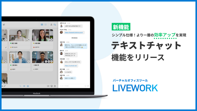 株式会社ライブリンクス(本社:福岡県福岡市、代表取締役:浅香守夫、以下 ライブリンクス)が提供しているバーチャルオフィスツール「LIVEWORK(ライブワーク)」は、シンプル仕様のテキストコミュニケーションで、効果的なチームコラボレーションを実現する「テキストチャット機能」を追加し、リリースしたことをお知らせします。