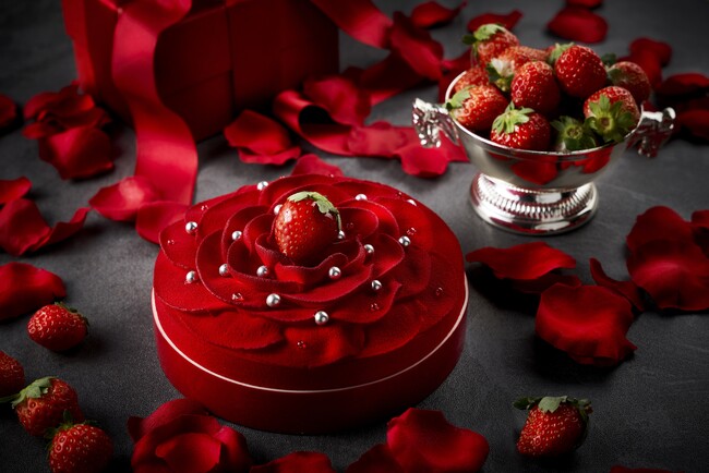 クリスマスカラーの赤に彩られ、ヴェルヴェット調の美しい質感が高貴な雰囲気を纏います。ケーキの中にはフレッシュなストロベリーを贅沢に敷き詰め、ビスキュイ生地とバニラガナッシュクリームで包み込みました。心温まるひとときを演出する、大人のためのロマンティックなケーキを、ぜひお楽しみください。