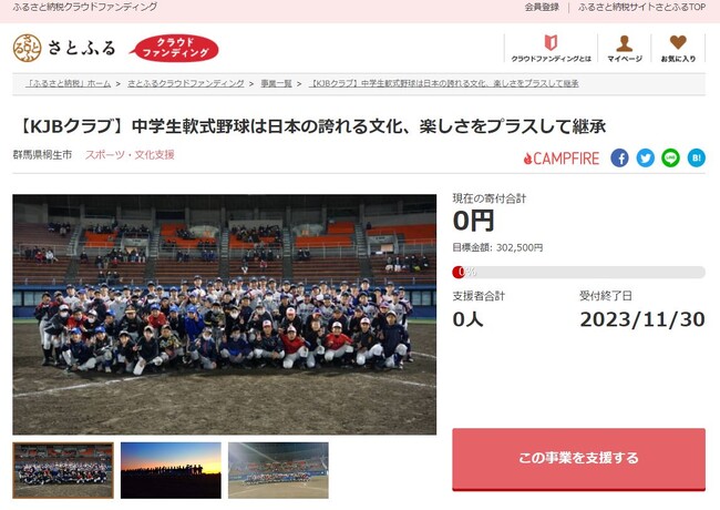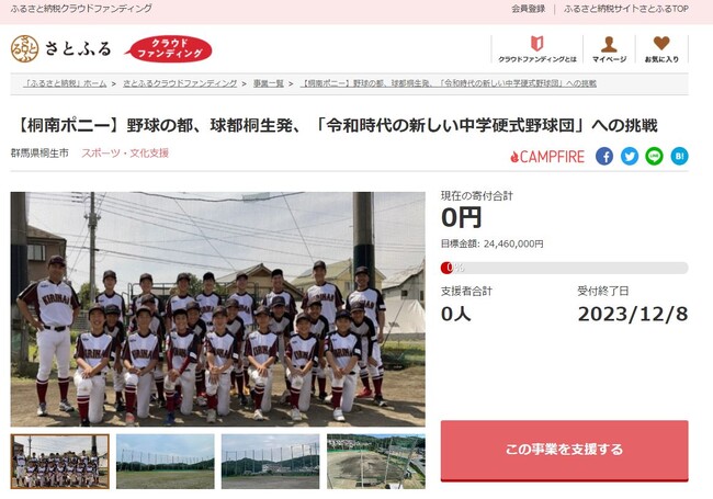 群馬県桐生市とさとふる、中学野球の環境整備を強化し野球を通した青少年の育成や市内のスポーツ振興を目指して、寄付受け付けを開始