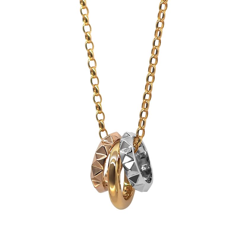 古くから縁起が良いとされる数字の“3”にちなんだTHREE COLLECTIONより、K18PG×K18YG×PT950のスリーカラーのペンダントトップが登場。艶めくK18YGのプレーンタイプのロンデルを、K18PGとPT950のダイヤモンドシェイプモチーフのロンデルで挟み込み、多面に光を受ける立体的なフォルムが胸元でさりげなく煌めきます。それぞれ単体でも使用できるので、スタイリングに合わせて組み合わせを変えることが出来、パートナーとのシェアも愉しめるのもポイント。