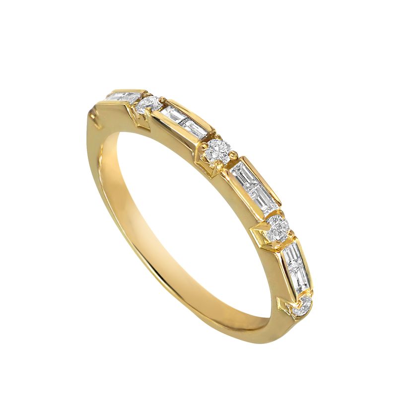 大人の好奇心を刺激するキュリオシティコレクションより厳選したダイヤモンドを使用したハーフエタニティリングが登場。上質なブリリアントカットダイヤモンドと透明感あふれるバゲットカットのダイヤモンドに高低差をつけてセッティング。立体感のあるラグジュアリーな煌めきが手元を彩ります。ロウダイヤモンドのリングとの重ね着けもオススメです。