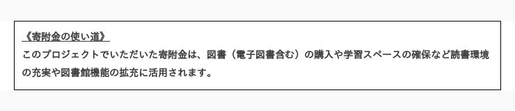 しかしここ数年は、新型コロナウイルス感染症の影響により来館者及び貸出冊数は減少傾向が続いています。そのため、子どもからお年寄りまで、楽しみながら本と親しめるように読書環境の充実や図書館機能を拡充させることで、活気があり親しみの持てる図書館を目指すべく、クラウドファンディングを実施することとしました。