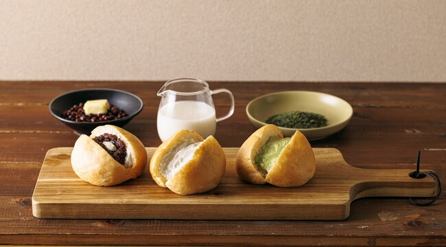 クリームはオーツミルクをベースに炊き上げた植物性カスタードクリームと大豆ホイップを合わせ仕上げています。スタンダードな「カスタード」、八女抹茶の抹茶粉を使用し鮮やかな色味と風味を楽しめる「抹茶」、つぶあんとくちどけを調整した有塩バターを入れた「あんバター※バターは動物性素材」の3種のフレーバーをご用意しました。