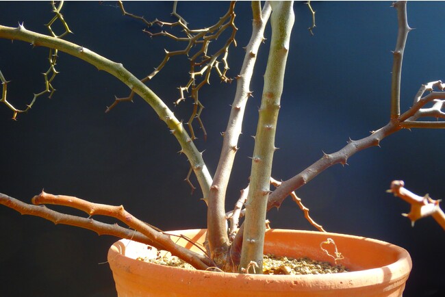 まるで花瓶のように膨らんだ根元の部分に、水や養分を蓄えて乾燥した場所でも生きていけるようになっています(このような植物をコーデックスと言います)。時期が良いと、名前にふさわしい白とピンクの美しい花を咲かせます。また、寒さに弱いのが特徴です。