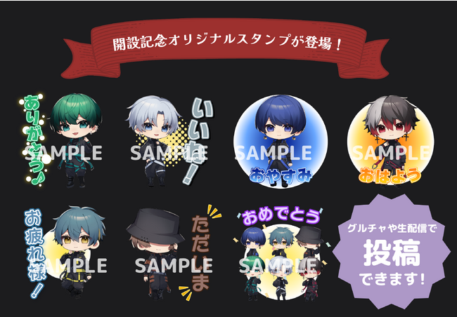 「グループチャット」「生配信」「1on1トーク(DM)」で使えるオリジナルスタンプ7種が登場。