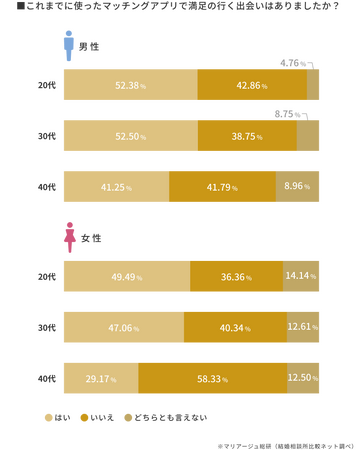 「マッチングアプリでの出会い満足度」についてマッチングアプリ利用者480名にアンケート じげんが運営する「マリアージュ総研 by 結婚相談所比較ネット」による調査