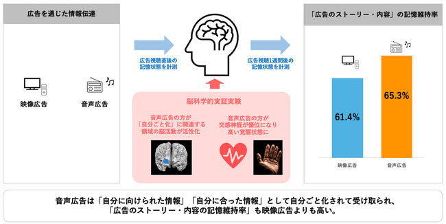 ラジオ業界では、古くから「想像力を掻き立てる」「信頼を醸成する」「商品・ブランドへの好感度が高まりファン化が進む」といった音声の特徴が通説として語られてきましたが、音声がもたらす効果について科学的な関連性は明らかになっていませんでした。