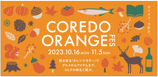 秋を彩るオレンジカラーにフォーカスした「COREDO ORANGE FES」が10月16日(月)~11月5日(日)の期間、コレド室町、コレド日本橋で開催。
