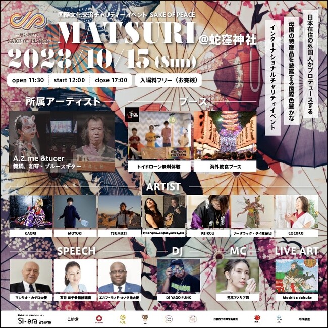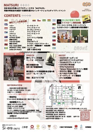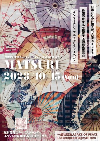 一般社団法人 SAKE OF PEACE(セイクオブピース) (東京都中央区銀座)は、国際色豊かなイベント外国人が作る"MATSURI"の開催を発表し、日本の文化と世界中の文化を融合させ、平和へのコミットメントを表明します。このイベントは、日本在住の外国人によってプロデュースされ、母国の特産品や文化を披露するインターナショナルチャリティイベントとして注目されております。
