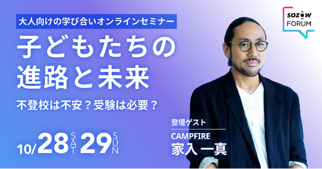 【不登校、過去最高の29万人超】「不登校の子どもの進路」「受験」などテーマにオンラインセミナー「SOZOW FORUM」を10月28日(土)、29日(日)開催