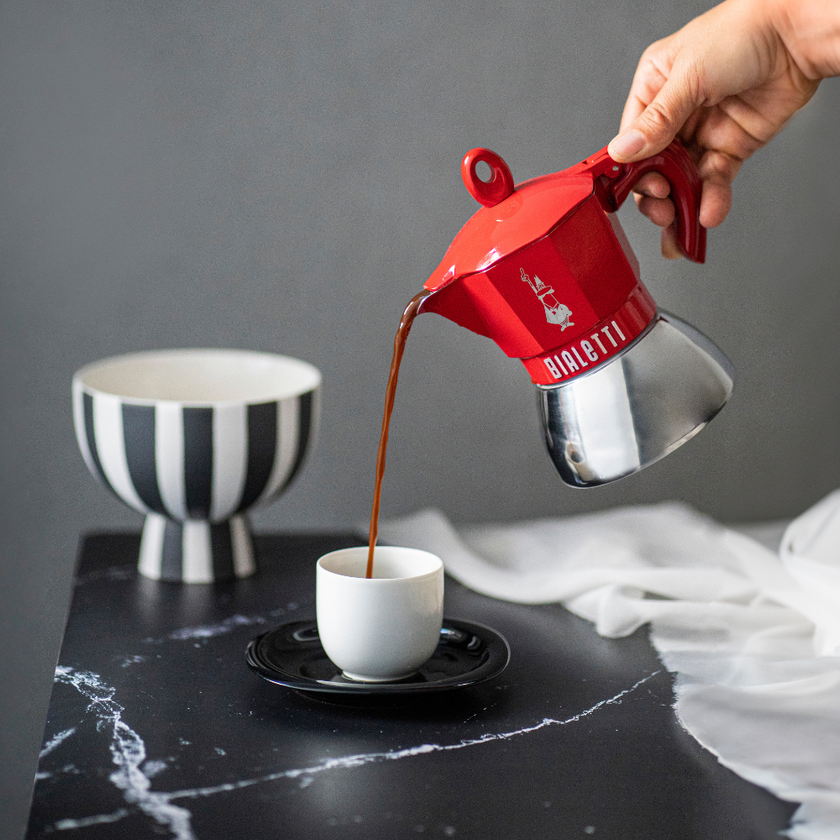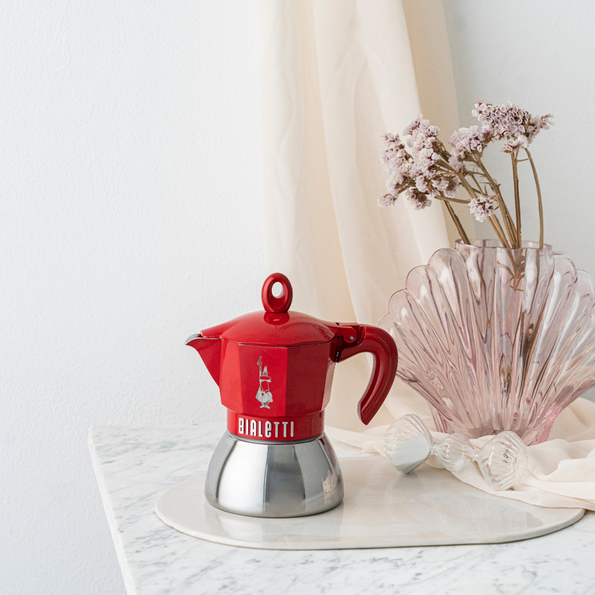 ビアレッティ エクスクルーシブは光沢仕上げのオリジナルカラーで展開されます。クラシックなイタリアンレッド、ネロ(ブラック)やエレガントなパステルカラーをご用意しました。
