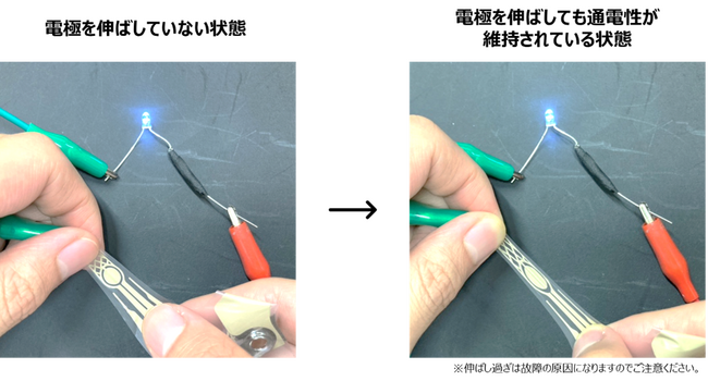 最大約50%まで伸ばしても通電する「伸びる電極」は、伸びても電気の出力が落ちない新素材の電極です。顔の造形や年齢を問わず様々な方の目もとに伸ばしてフィットさせることができ、伸びている状態でもしっかりと筋肉に電気刺激が伝わります。エイジングサインの出やすいデリケートな目もとにしっかりフィットし、眼輪筋や側頭筋にアプローチします。
