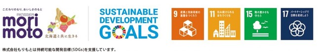 持続可能な開発目標(SDGs)において、北海道産素材(小麦、小豆等)を積極的に活用して地産地消に取り組むため11項目「住み続けられるまちづくりを」に合致し、生産者様とのパートナーシップを継続して続けていることで、 17項目「パートナーシップで目標を達成しよう」に合致することなどから「サステナブルスイーツ(R)」*として位置づけ、展開しております。