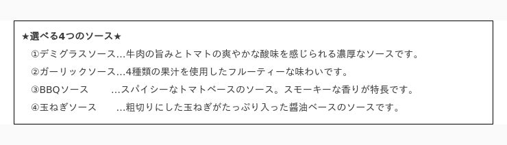 程よい酸味とフルーティーな甘みが特長のソースは、チーズがたっぷりかかったハンバーグと相性抜群です。