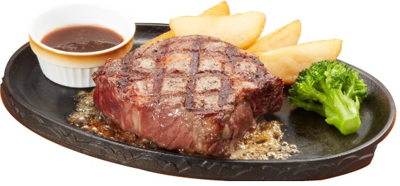赤身と脂身のバランスが絶妙な高級部位“リブロース”を贅沢に厚くカットしたステーキです。