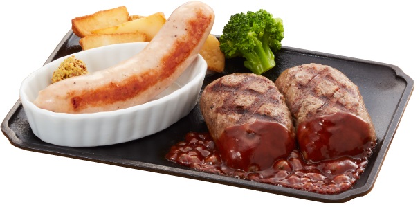 肉の旨みがギュッとつまったパリッとした食感のソーセージと、大俵ハンバーグを組み合わせた食べ応え抜群の一品です。