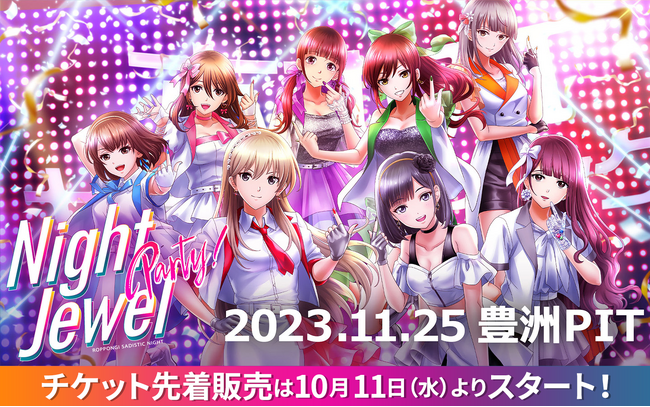株式会社ボルテージ(本社:東京都渋谷区 代表取締役:津谷 祐司)は、11月25日(土)に豊洲PITにて開催する六本木サディスティックナイトのライブイベント「Night Jewel Party!」のチケットの先着販売を10月11日(水)より開始することをお知らせいたします。
